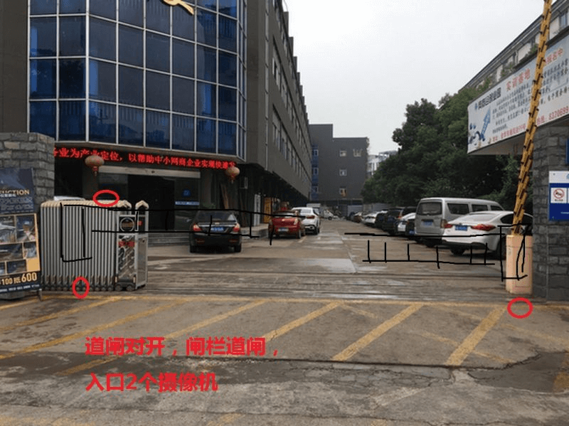 去現場觀察,主要是要注意車道的長寬和來車方向. 車道的寬度盡量控制在4米內,大于4米的要擺放隔離樁限制;長度至少要有6米,太短會造成車牌識別不正,就像下圖這樣,車遷直時攝像機已經看不到車牌了.